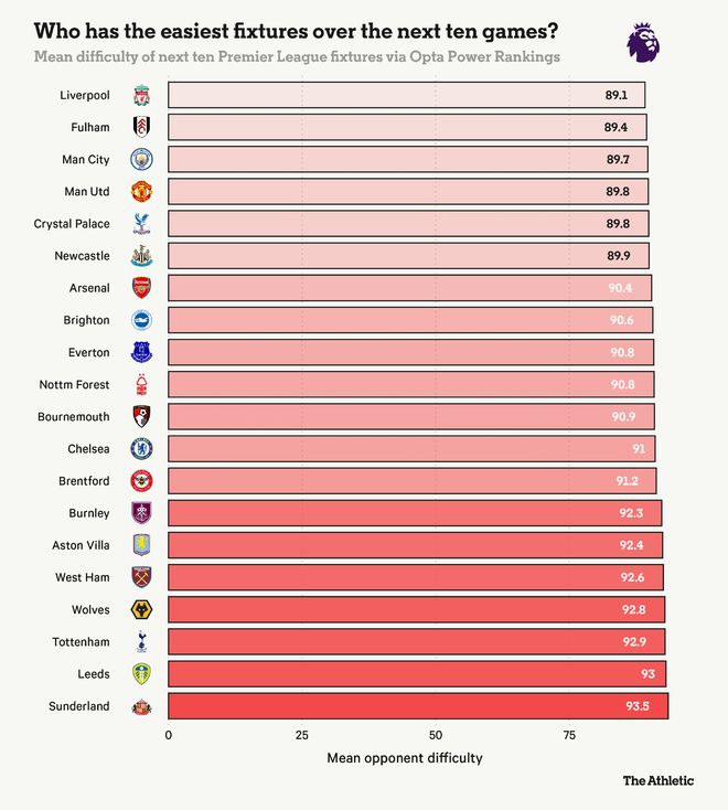 更糟糕的是,西汉姆联接下来的比赛包括纽卡(主)、伯恩利(主)、伯恩茅斯(客)、利物浦(主)、曼联(客)、布莱顿(客)、阿斯顿维拉(主)和曼城(客)。这将是努诺球队的关键时期,很难想象不会以一系列失败告终。